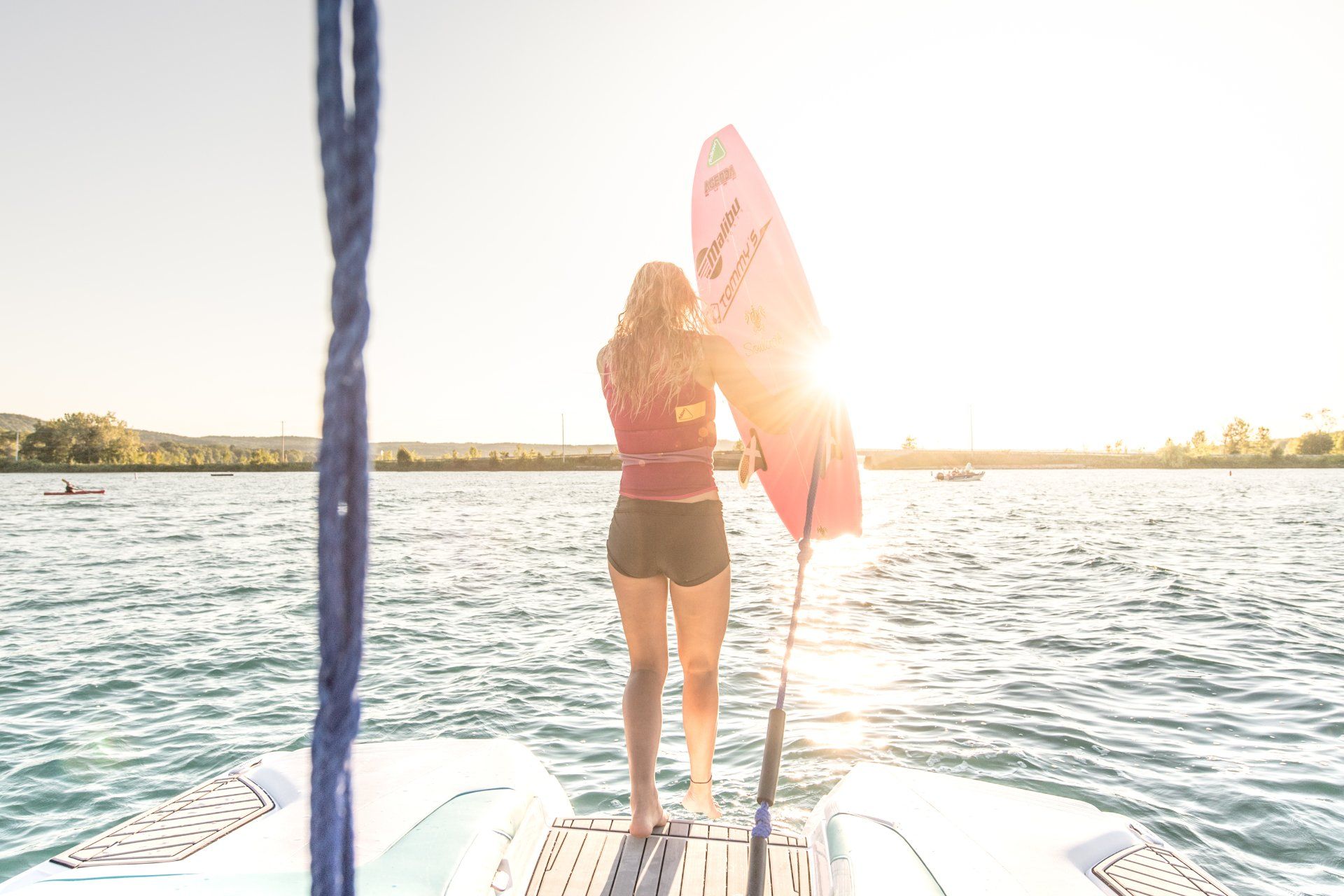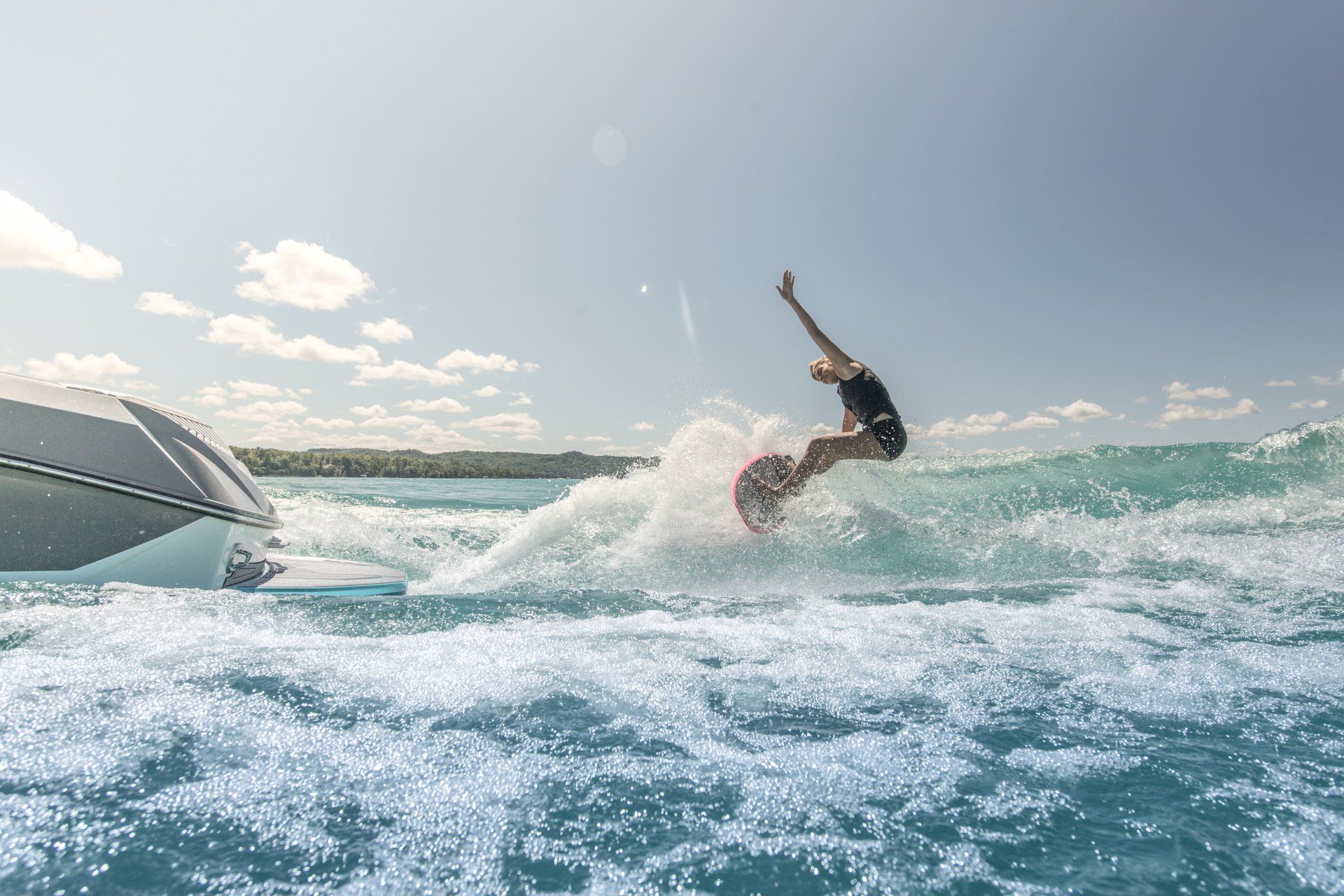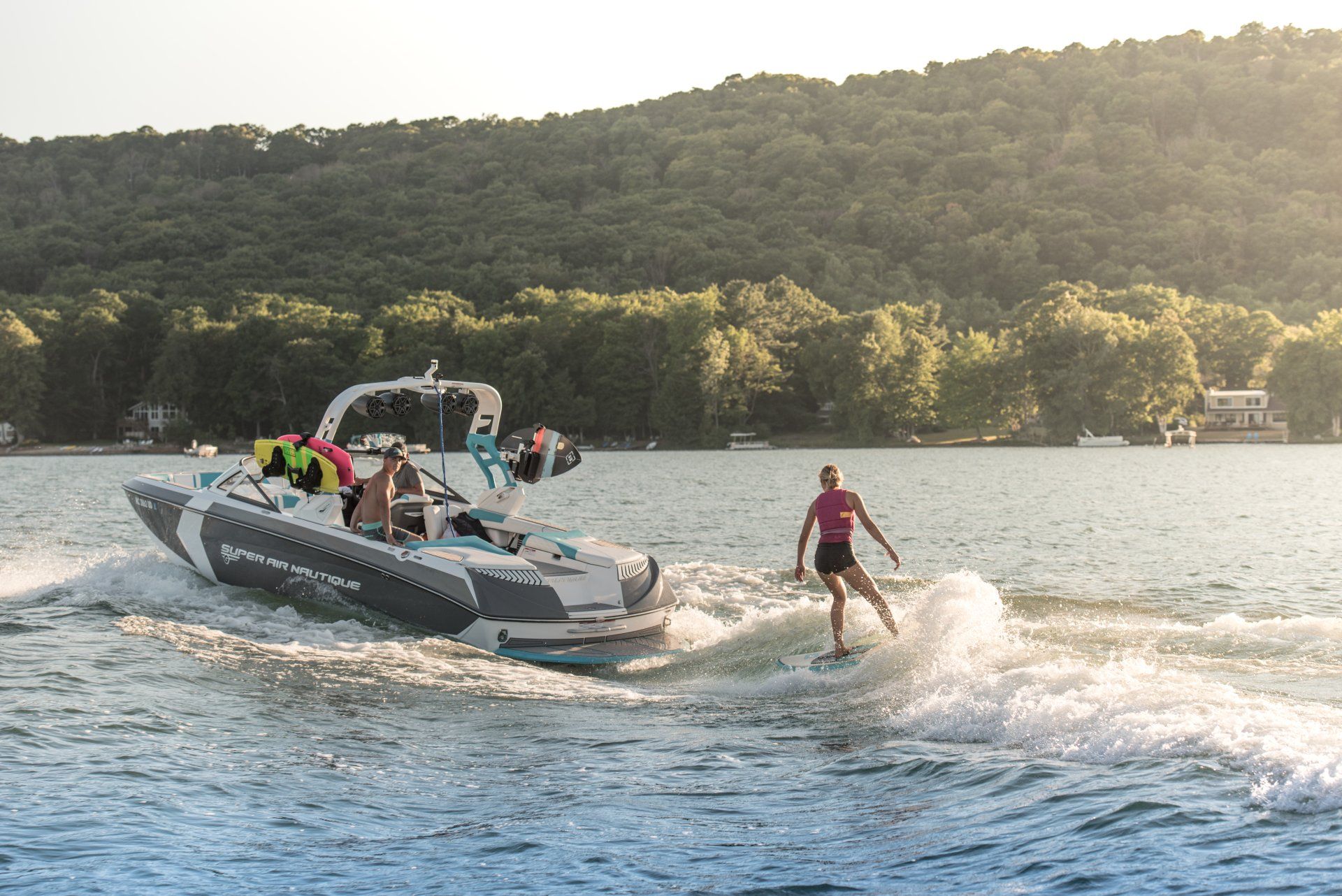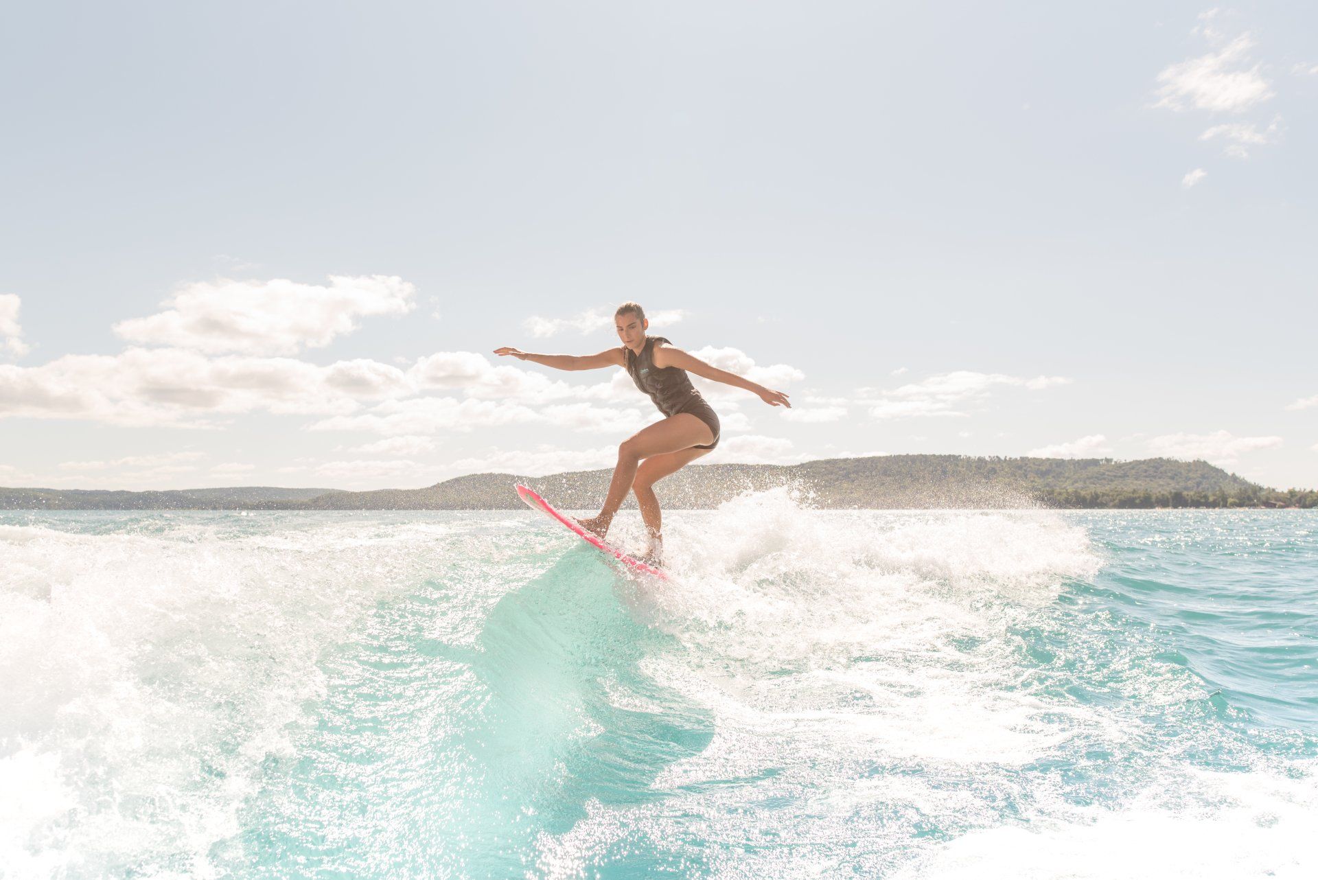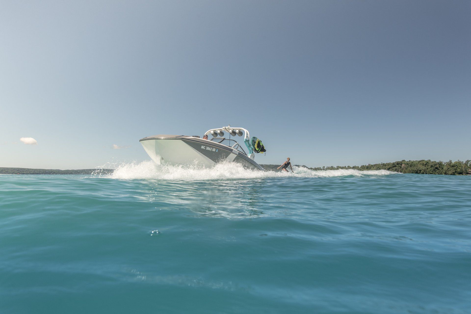 The shoot was held in Glen Arbor in the blue waters of Glen Lake, in North West Michigan. Professional Wakesurfer and two-time world champion Cassidy Gale was featured and made a great addition to the team of talent. The excitement and thrill that the wakesurfer, water skier, and professional talent provided to the images were second to none.